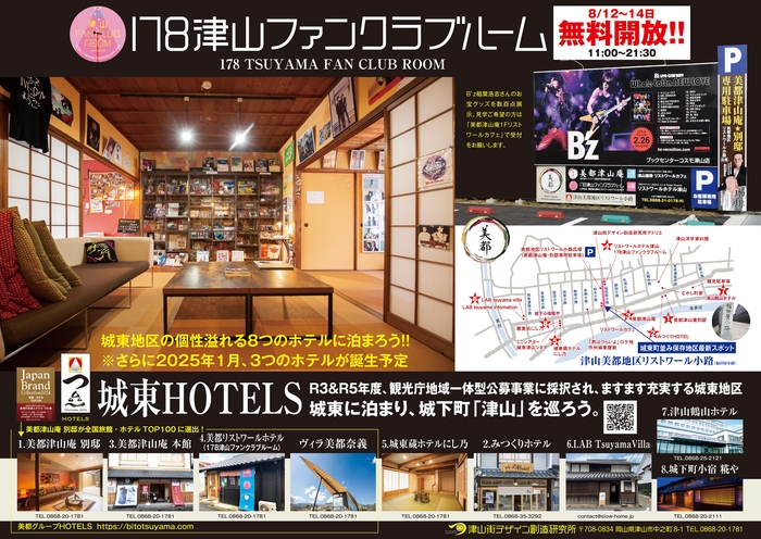会場である『178津山ファンクラブルーム』は、稲葉さんの青春の地である津山市城東地区に2019年に開設。稲葉さんの十枚以上のサイン入りポスターやお宝グッズが満載。全国からのファンと地元の人々との交流ができる津山の観光スポットで、8月12~14日、11:30~ 21:30まで無料開放いたします。