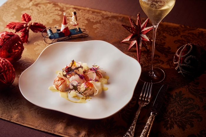日々華やかな料理を創作する兵庫県出身の池田和政シェフ。日頃「Prince Etoile」では、フランス料理には 不可欠であるバターの使用を極限まで控え、伝統的なフランス料理を現代風にアレンジした料理を提供しています。今回のクリスマスコースは、淡路島の沼島で水揚げされた伊勢海老のグラティネテルミドールや、淡路ビーフフィレ肉のパイ包みなど、淡路島の食材を活かした料理にソムリエ厳選シャンパーニュとワインのマリアージュが華を添えます。心温まるひとときをお愉しみください。