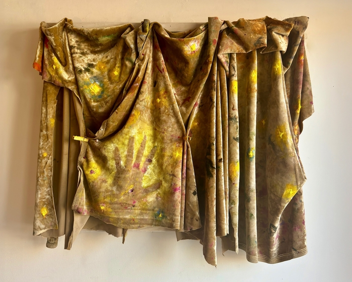 ベロアを使ったカーテン作品は、私が真っ暗な部屋に居た時に「どうしたら光が作れるだろう?」と、もがいて生まれました。壁にカーテンが掛かってるという事は、そこには光が差しこむ「窓」があるということ…!