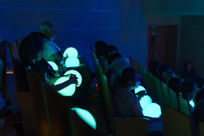 観客一人ひとりが抱える光が物語と呼応し、舞台と客席の境界を越える。