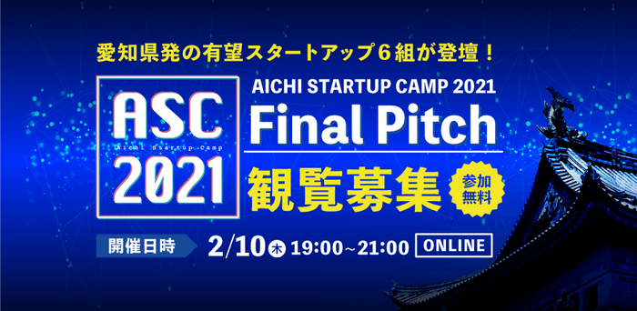 愛知県発の有望スタートアップが登壇。 「AICHI STARTUP CAMP 2021 Final Pitch」を 2月10日(木)オンライン開催。観覧者を募集。