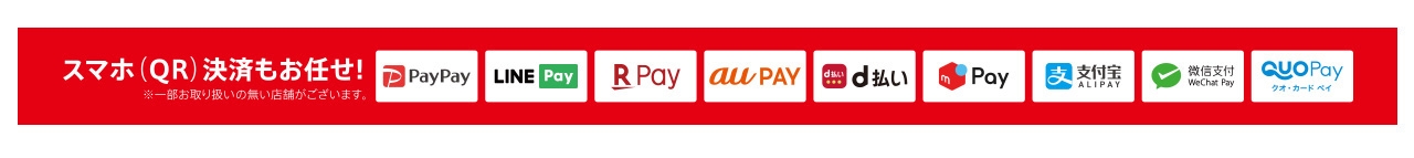 スマホアプリのQRコード決済をはじめ、便利なキャッシュレス決済もご利用可能です!