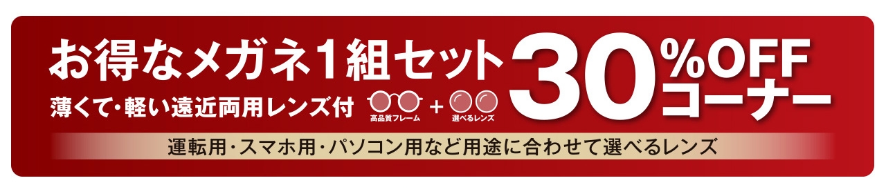 薄型遠近両用レンズも選べる! 選べるレンズ付 メガネ1組30%コーナーを期間限定でご用意!