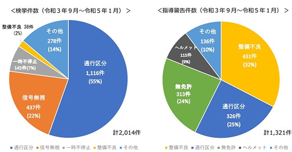 自賠責保険の加入・ナンバープレートの着用は現在と変わらず、改正後も必須ですので注意しましょう。現行でのルールでも下記の通り様々な理由で検挙や指導警告が行われています。法改正されて更に普及していけば、事故や検挙数も増加すると思われます。自転車同様ヘルメットの着用は努力義務に変更されますが、安全のためにも着用しましょう。