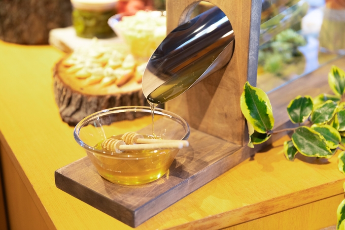 ガーデンブレックファーストには、舞洲のガーデンで育てられた花々から採取された「舞洲ローカルハニー」も使用。この特別な蜂蜜は、フレンチトーストやサラダ、チーズなどに添えられ、料理に自然な甘さと豊かな風味を加えます。体にも優しいこのハニーで、優雅な朝のひとときをお楽しみください。