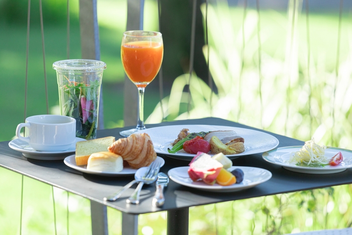スモークの香り豊かなダブルスモークベーコンや、カリッとしたブリュレ仕立てのフレンチトースト、選べる2種類の特製ソースのパスタなど、多彩なメニューをご用意。さらに、サステナブルな食材を使用し、環境と健康に配慮した朝食スタイルを提案します。自然の恵みと地域の魅力を体感できる、ここだけの特別な朝をお楽しみください。