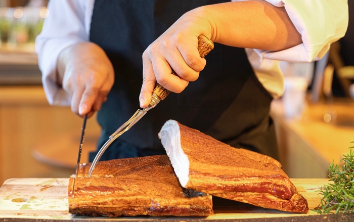 特に、神戸ポークを使用した無添加の自家製ダブルスモークベーコンは、二度にわたる燻製で深いコクと香りを実現。贅沢な味わいを提供しながらも、余剰食材の再利用や調理時の無駄を最小限に抑える取り組みを通じて、フードロス削減にも貢献しています。