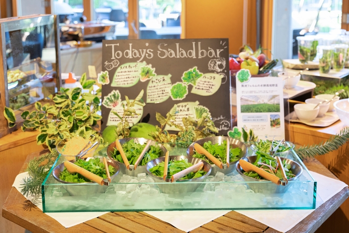 ガーデンブレックファーストでは、自社の庭で育てたハーブや野草に加え、地元の提携農園「舞洲フェルム」で栄養豊富に育てられた水耕栽培野菜や、堺市の「今野農園」で丁寧に育てられた旬の野菜を使用しています。