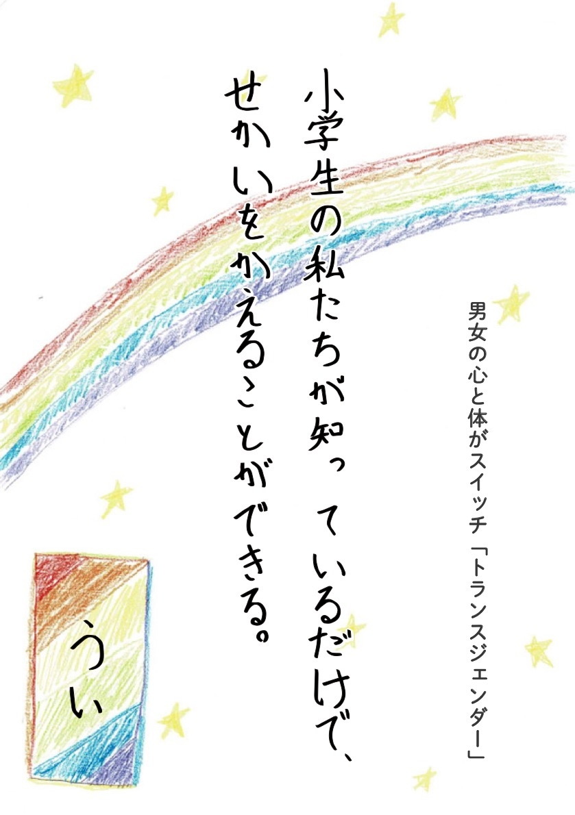 また、小学校3年生の時にLGBTQに興味をもち、自由研究でトランスジェンダーの当事者の方にインタビューをしました。それをまとめ、小学校4年生の時に小冊子「小学生の私たちが知っているだけで、せかいをかえることができる。」を自費出版。当時の台湾デジタル担当大臣オードリー・タン氏やロバート キャンベル氏とオンライン対談をした内容を加えて絵本「みんなえがおになれますように」(Gakken)を出版。