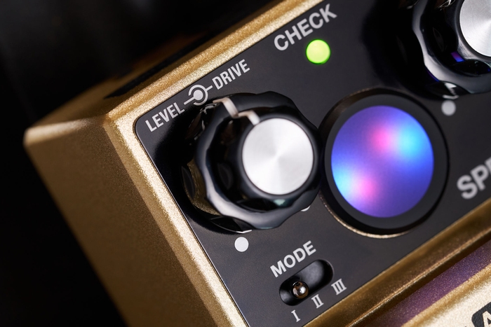 ・MODE III:MODE IIの音抜けの良さはそのままに、「DRIVE」の可変幅を拡張。オリジナルでは成しえなかった強い回転感と深い歪みサウンドを生み出します。激しい揺れと歪みを備えつつ、輪郭のあるサウンドを作り出すことが可能です。