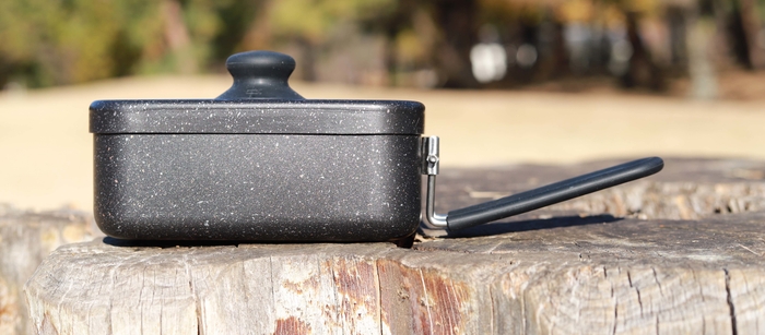 - 一般的なメスティンよりも厚い1.5ミリのアルミを、2層のマーブル(大理石)加工でテフロン加工よりも焦げつきにくく汚れがつきにくい
