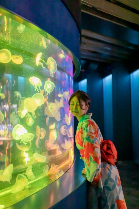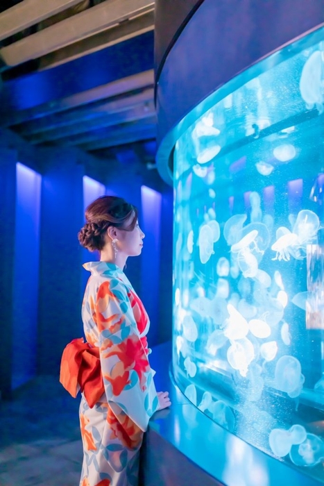 ぜひ夢館のオリジナルクラゲ柄の浴衣×クラゲ帯結びを着用して、京都水族館のクラゲを見に行ってください。クラゲづくしで、癒しと高揚感の両方を味わえる至福のひと時を過ごせると思います!