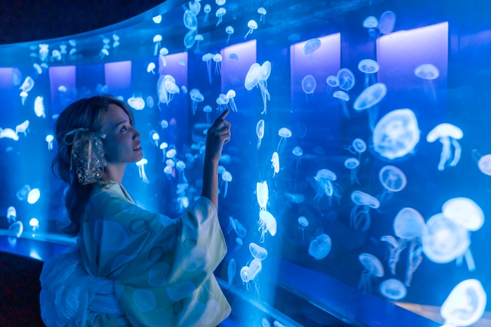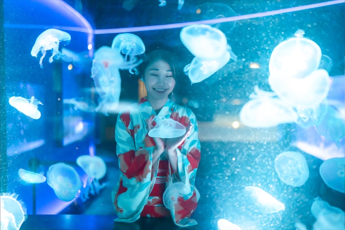 クラゲ帯結びの浴衣 × 京都水族館で自分だけの写真を撮ろう