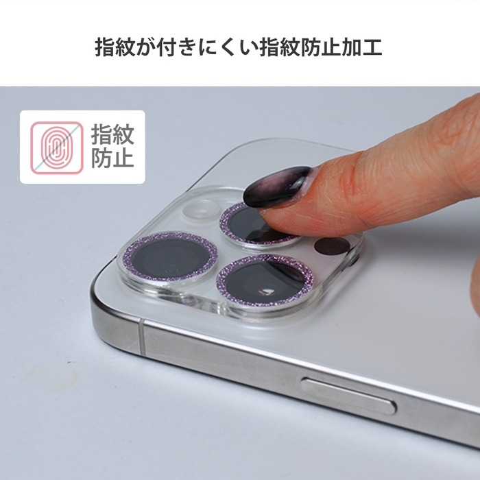 カメラ部分を覆っていないiPhoneケースであれば装着が可能なため、好きな組み合わせで楽しめます。裏面は粘着シートになっているため、簡単に貼って剥がすことができ気分によって着せ替えも可能。万が一破損してしまった場合でもガラスが飛び散らない飛散防止加工(カメラレンズ部分を除く)や指紋が付きにくい指紋防止加工を施しているため安心して使えます。