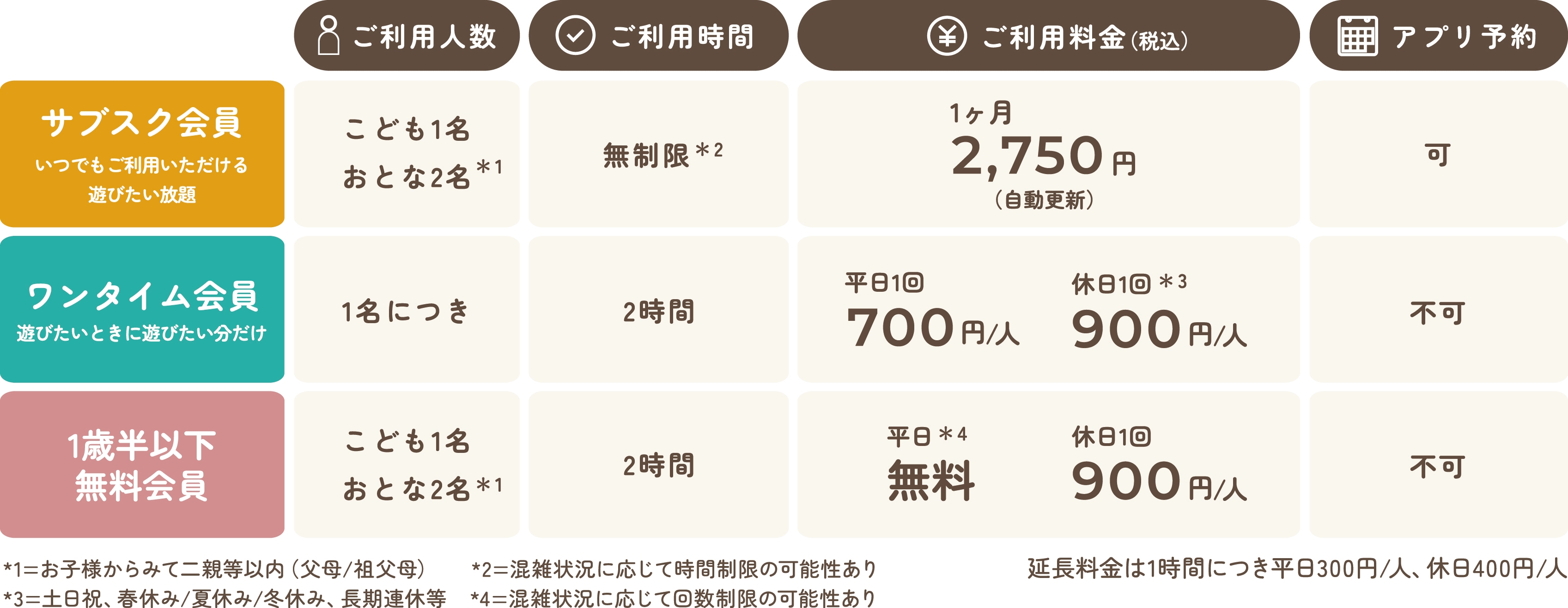 ・月額利用のサブスク会員の方は、サブスクのご料金だけで全国の「こどもっちパーク」をご利用いただけます。また、各パークの混雑状況を確認していただくことができ、アプリから簡単にご来場予約をすることができます。(サブスク会員特典)