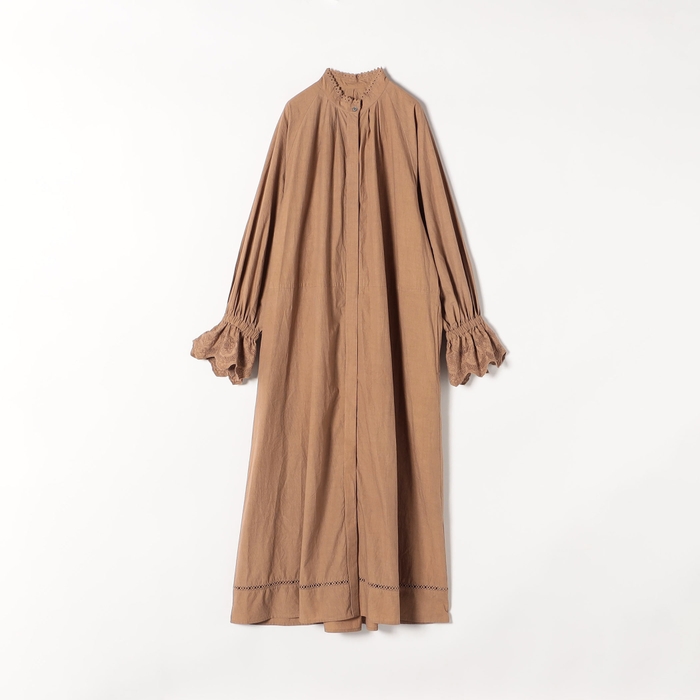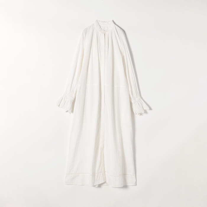 襟元と袖口にポイント使いしたレースとマキシ丈で華やかな雰囲気を纏えるこだわりのシャツワンピース。袖口のレースはギャザーをたっぷりと寄せて贅沢に使いました。襟元には華奢なレースを挟み込み、程よく顔周りに華やかさをプラスしてくれます。程よいハリ感が特徴のコットンポプリン素材が袖のボリューム感や綺麗なシルエットを作り出し、一枚で着てもレイヤードで合わせても様々な見せ方が着回しが楽しめます。ご自宅でお洗濯ができる、イージーケアも嬉しいポイント。