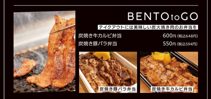 「炭焼き牛カルビ弁当」「炭焼き豚バラ弁当」も大好評!