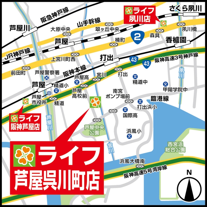 <店 名>「ライフ芦屋呉川町(あしやくれかわちょう)店」
