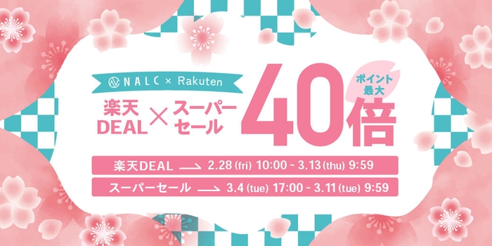 シリーズ累計販売個数320,000個突破※1のジェンダーレスコスメブランド「NALC(ナルク)」(株式会社G.Oホールディングス :大阪府大阪市)は、2月28日〜 3月13日までの期間中、【楽天DEAL×スーパーセール】にて人気アイテム各種を《ポイント最大40倍》で販売いたします。