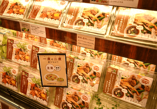 八百屋さんならではの野菜をおいしく食べられる料理のミールキット。主菜と副菜がセットになった商品もあり、簡単に調理ができ便利な商品。