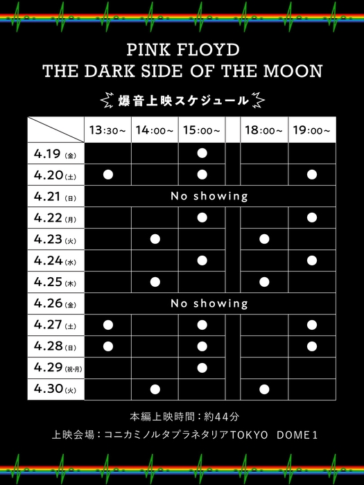 2024年4月19日(金)~5月9日(木)の期間、コニカミノルタプラネタリアTOKYO(有楽町)にてピンク・フロイドの名盤『狂気(原題:The Dark Side Of The Moon)』の全楽曲を使用したプラネタリウム・ショー「The Dark Side Of The Moon」の爆音上映が決定しました。