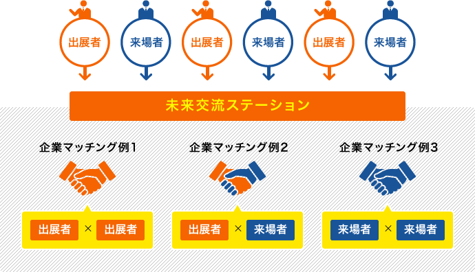 リアル展示会の会期前にメッセージで商談予約をし、当日会場で商談を行うこともできます。