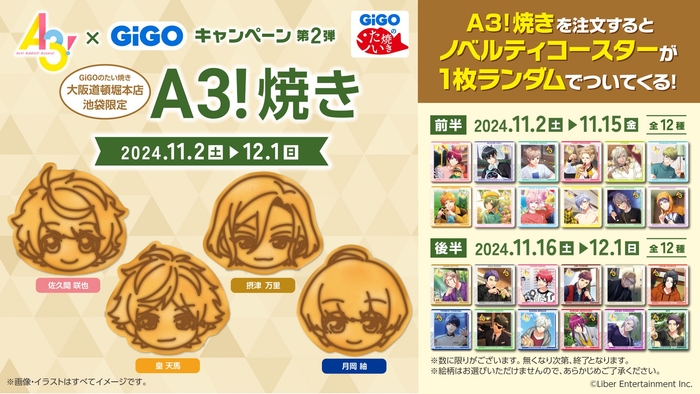 株式会社GENDA GiGO Entertainment(本社:東京都港区 代表取締役社長:二宮 一浩 以下「当社」)は2024年11月2日(土)より、GiGOグループのお店におきまして株式会社リベル・エンタテインメント(本社:東京都千代田区 代表取締役社長:林田 浩太郎)が手掛けるイケメン役者育成ゲーム『A3!』(エースリー)の描き下ろしイラストを使用したコラボキャンペーン第2弾を開催いたします。