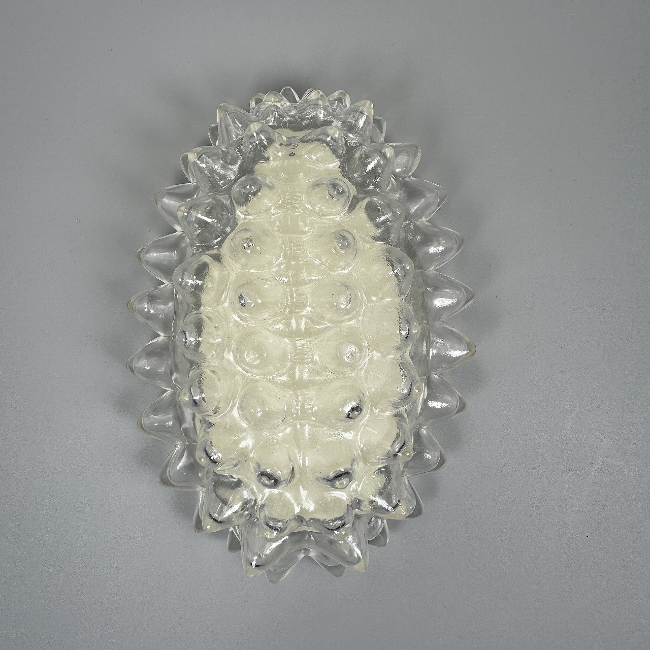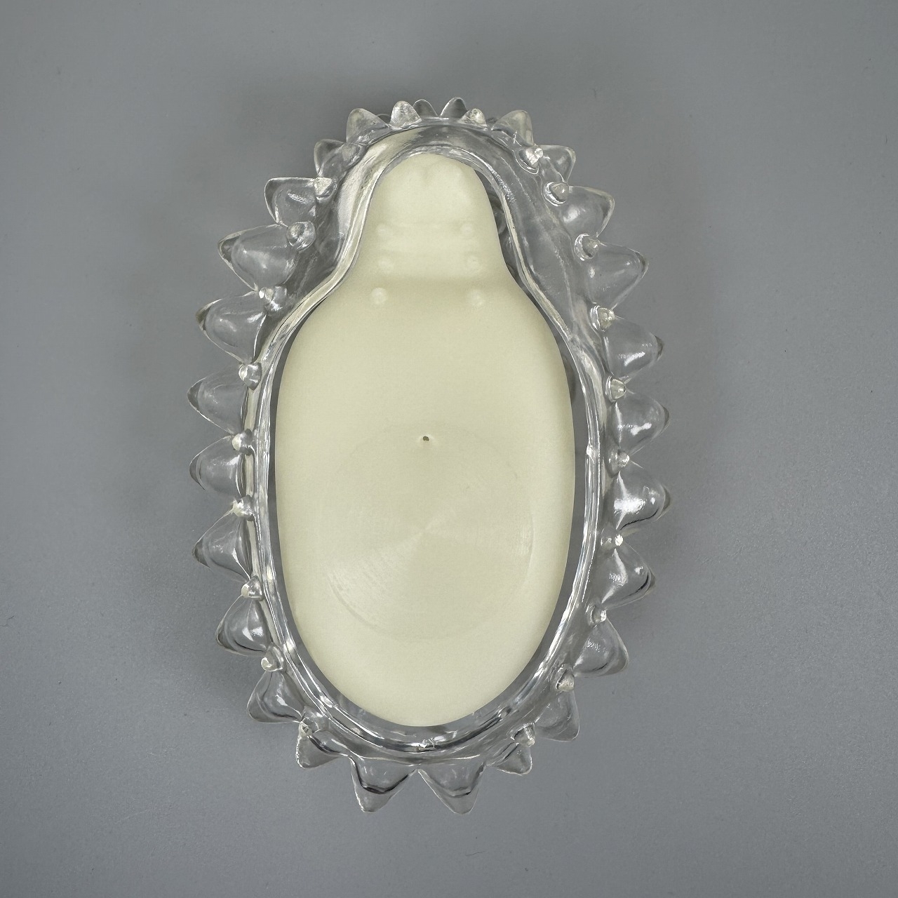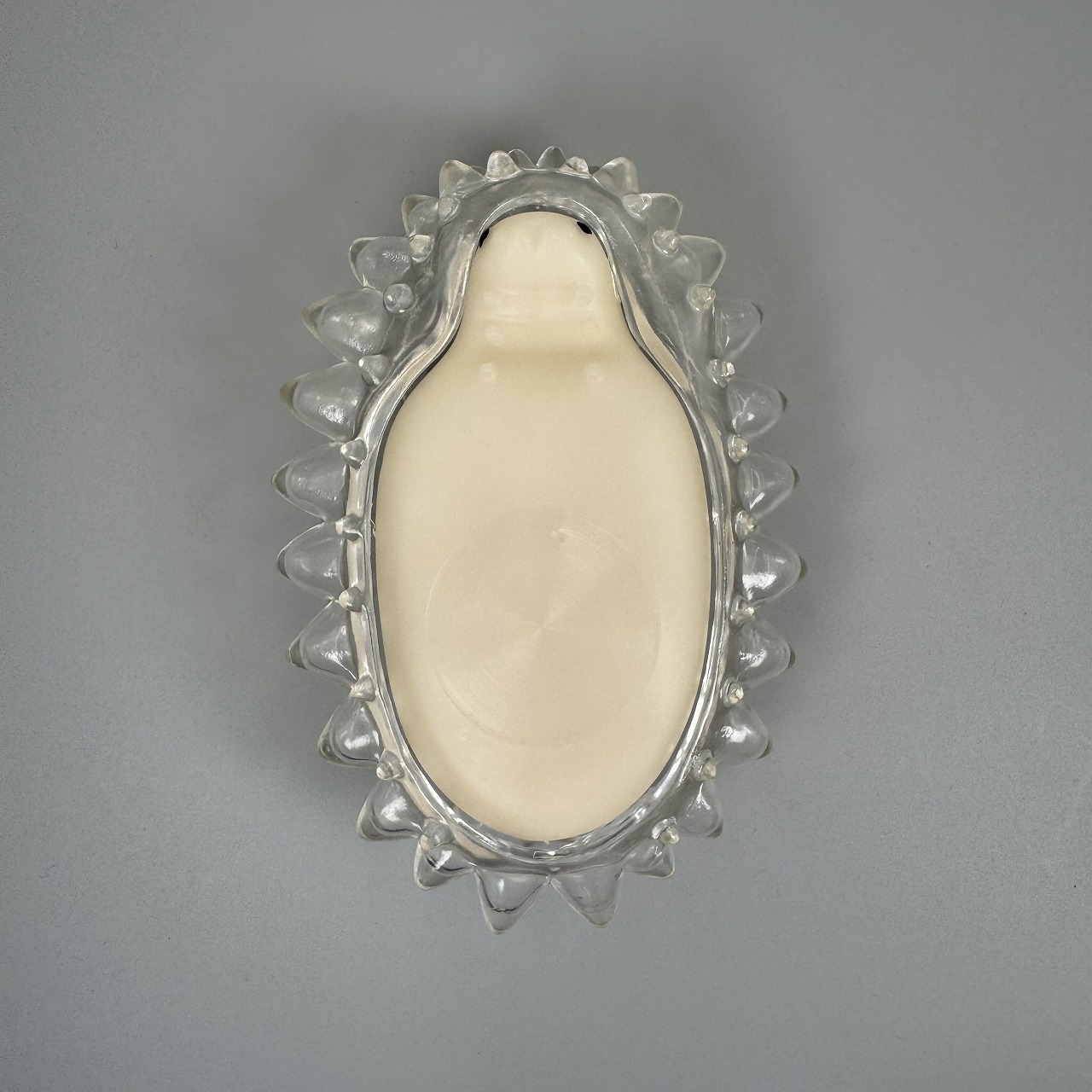 クリア素材で特徴的な粘液を表現し、本体は蓄光ソフビで表現。粘液部分と本体部分は分離した構造。