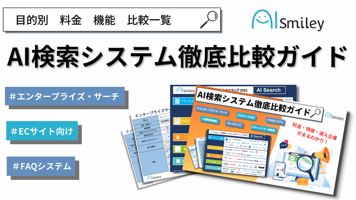 「社内文書を効率よく見つけ出したい」「情シス向け問い合わせの負担削減をしたい」「ECサイトの購買体験価値をアップさせたい」といった悩みを解決するために、「AI検索システム」の導入を検討する企業が増加しています。今回は、そんなAI検索システムの導入を検討している方向けに「エンタープライズサーチ」「ECサイト」「FAQシステム」の3つをテーマにした最新版の比較表ガイドを無料で配布します。