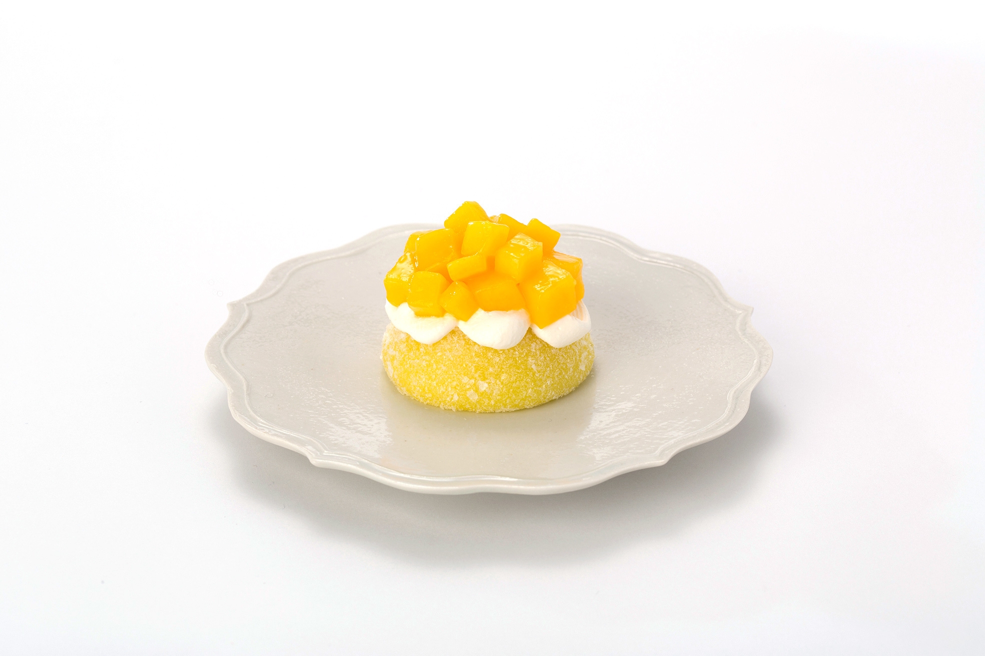白あんをベースに、クリームチーズとマンゴーピューレを加えたあんを包みました。上にはカットしたフレッシュマンゴーをトッピング。甘酸っぱい「和のケーキ」のような味わいをお楽しみいただけます。
