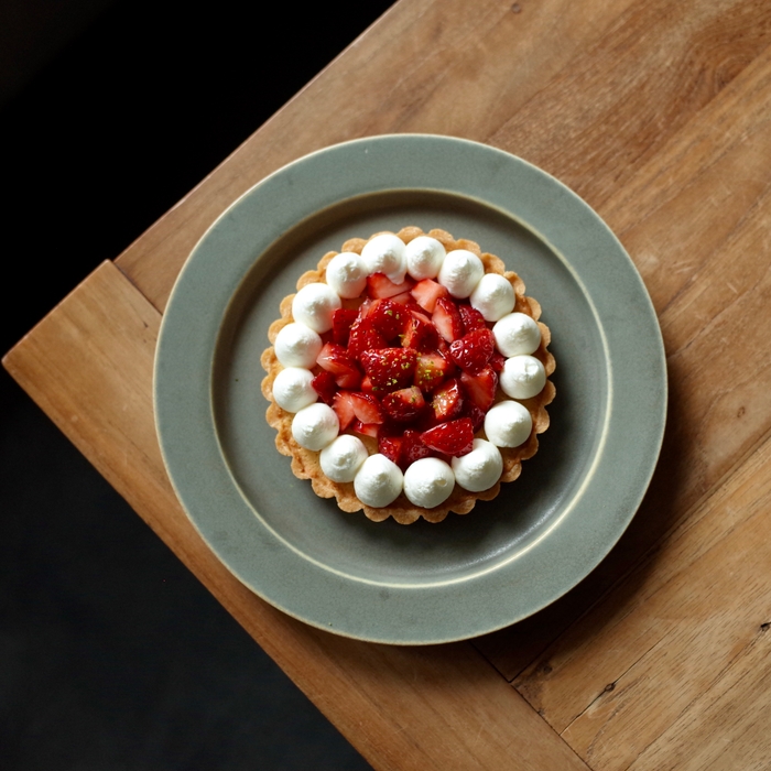 春限定の「苺のホールタルト」も4月1日より販売を始めます。お一人サイズとしては大きな直径12cmのタルト台に刻んだ苺を散りばめ、濃厚なカスタードクリームと甘さを控えめ抑えたホイップクリームで優しい味に仕上げました。このケーキを目当てに毎年春に訪れる方も多く、当店の春を象徴するメニューの一つです。