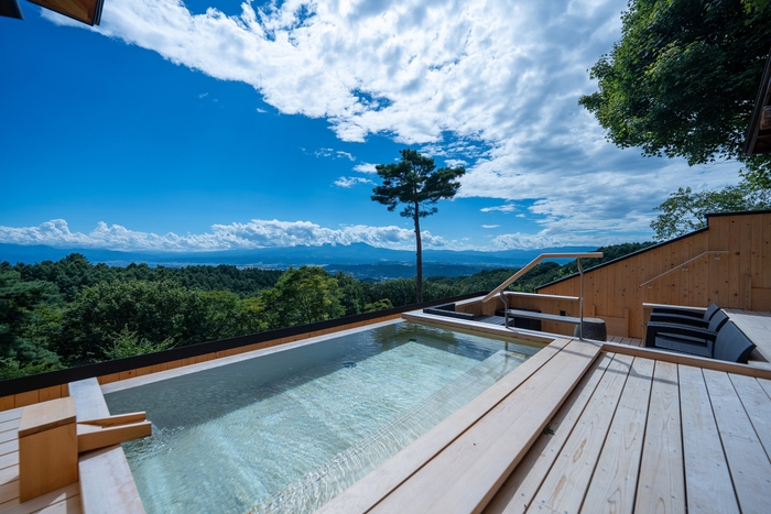 広々とした16畳の部屋の下には、もう1つのフロアがあり、半露天風呂をお楽しみいただけます。