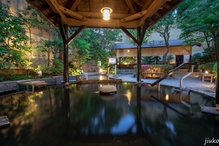 まるで老舗旅館のような風合いで、館内には庭園もあり、源泉掛け流しの天然温泉が楽しめます。