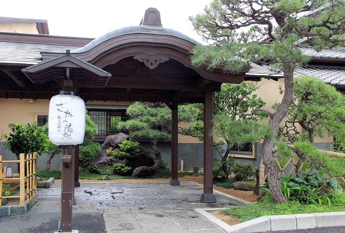 源泉かけ流しにこだわった日帰り温泉施設「さやの湯処」。