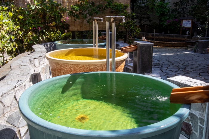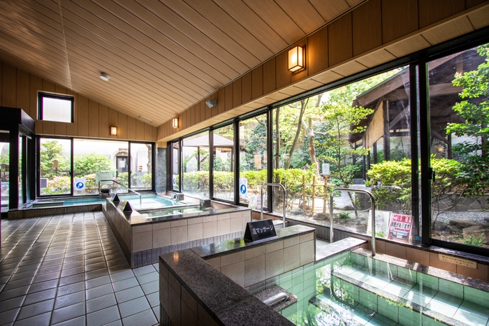 源泉かけ流しや枯山水の日本庭園、うぐいす色の湯など、古きよき和の趣を堪能できます。