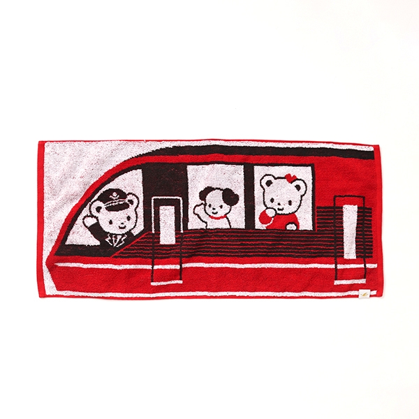 ファミちゃんと特急ひのとりのジャカード織のフェイスタオルです。