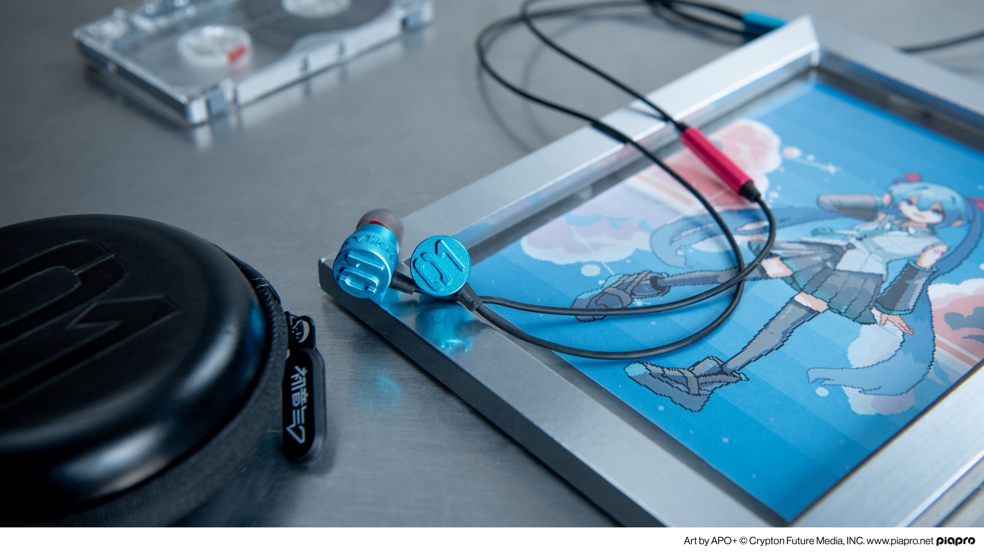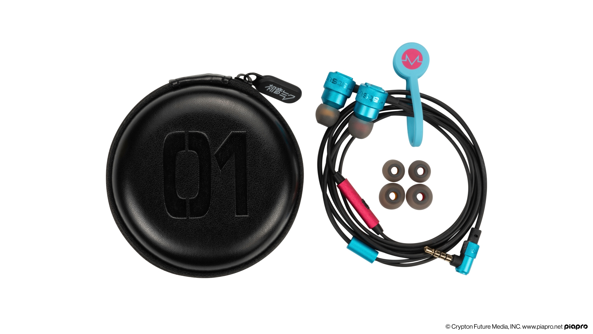 剛性に優れたアルミニウムハウジングには初音ミクの「01」ロゴを刻印。ハウジング、プラグ部分はグリーン、リモコン部分にはピンクと、コラボモデル限定のアルマイトカラーを施しました。ハウジング、リモコン、プラグ部分それぞれにオリジナルのアルミニウム切削パーツを使用しており、イヤホン全体で統一感のあるデザインをお楽しみいただけます。また、気軽に持ち運びができるように、オリジナルセミハードケースと、長いケーブルも整理可能なマグネットケーブルクリップをご用意。ケースには「01」ロゴをエンボス加工で施し、マグネットケーブルクリップはオリジナルカラー、オリジナルデザインとなっています。