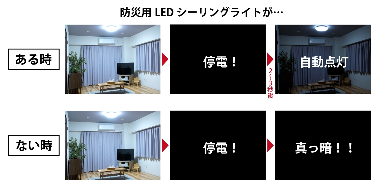 <1. 停電を検知し、自動点灯!