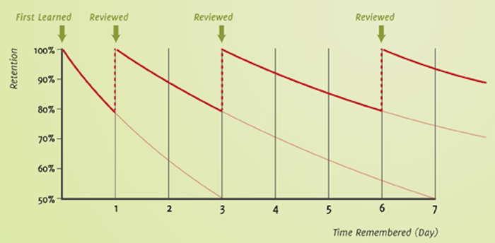 短期間のうちに何度も復習をすることで記憶が定着していきます。