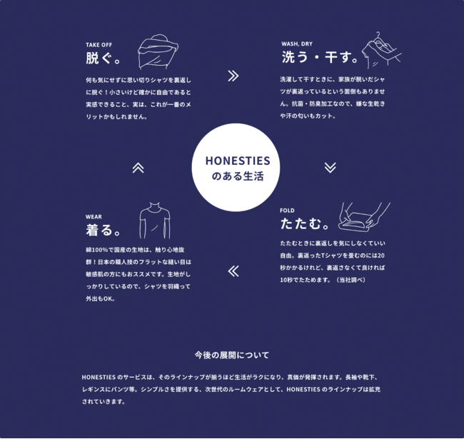 裏表前後のない肌着でTVで話題、グッドデザイン賞も受賞したHONESTIESが、今度は裏表+かかとのない靴下を開発!本日11月10日よりmakuakeで先行販売開始!好評企画「裏表ポリス」も再開!