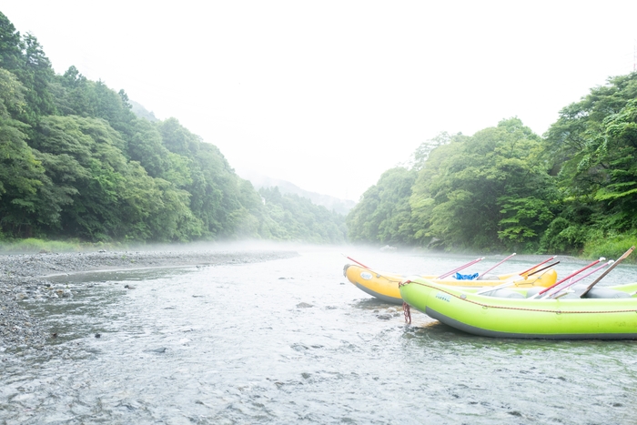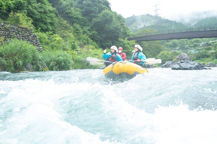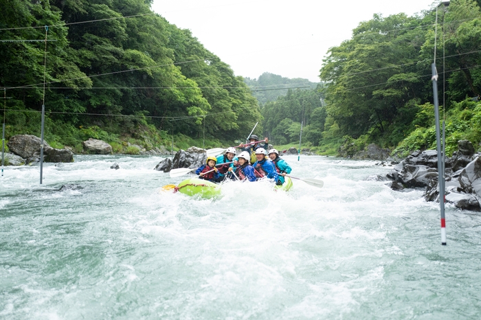 ラフティングボートを率いるのは、御岳渓谷でリバーアクティビティサービスを提供する「みたけレースラフティングクラブ」代表の柴田大吾さん。世界選手権2位の経歴を持つラフティングプランナーです。