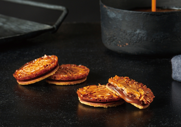 香ばしく華やかな甘さのアーモンドフロランタンとバターサブレでとろけるキャラメルをサンドしました。