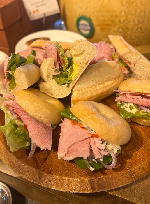 ライブキッチンでは、シェフが目の前で温かいサンドイッチや焼きたての料理を次々と仕上げます。庭で育てたハーブを活用したメニューが香りを添え、五感を楽しませるひとときを提供しています。