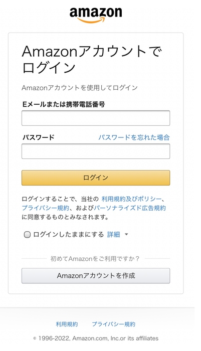 手順2 アマゾンのサイトに移動しますので、お手持ちのアマゾンアカウントでログインします。