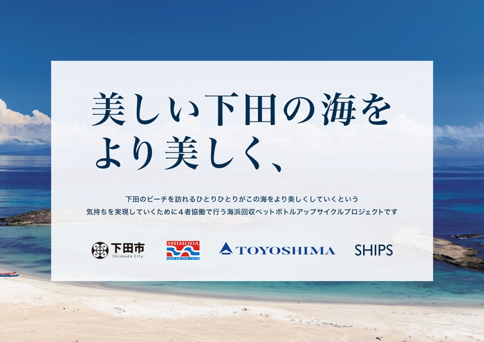 この取り組みは、美しい海の保全とその魅力を広く伝えることを目的とし、特定非営利活動法人下田ライフセービングクラブ(理事長:山口智史、静岡県下田市)(以下「下田LSC」)とシップス、が長年にわたり実施してきた海水浴客の方々が、自主的に参加しやすいビーチクリーン活動と、豊島株式会社(代表取締役社長:豊島半七、名古屋市中区)(以下「豊島」)の「漂着ペットボトルを回収し資源にする、UpDRIFTⓇ(アップドリフト)」の仕組みを活かして、下田市のご協力をいただき、この4者が協働で実施します。