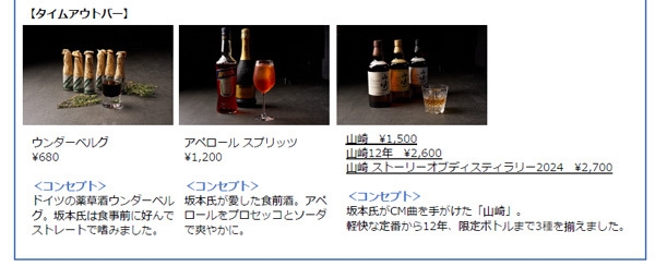 坂本氏がこよなく愛した料理やお酒も。さらに、貴重なライヴの上映も定期開催。