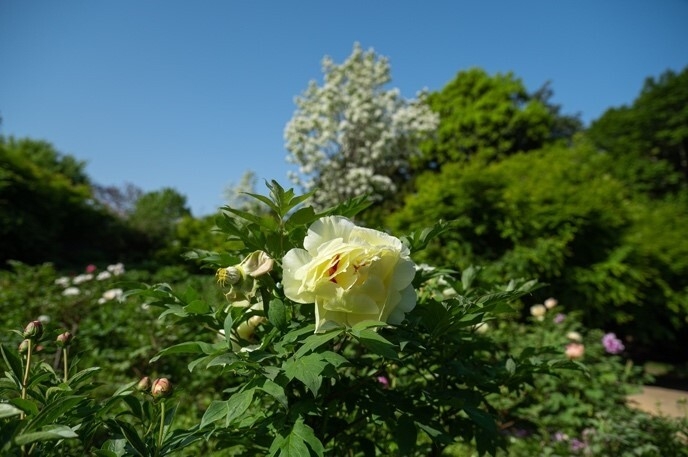 通常4月下旬には牡丹からシャクヤクに主役を交代しますが、今年は3月の低温の影響でゴールデンウィークに見ごろを迎える牡丹があります。その中から注目の牡丹をご紹介。