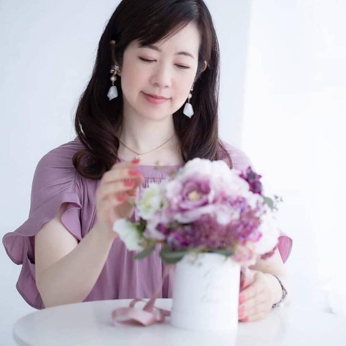 生花のフラワーデザイン経験を生かし、現在はアーティフィシャルフラワーのローズをメインとしたウェディングブーケやインテリアアレンジメント、空間装花をデザイン。