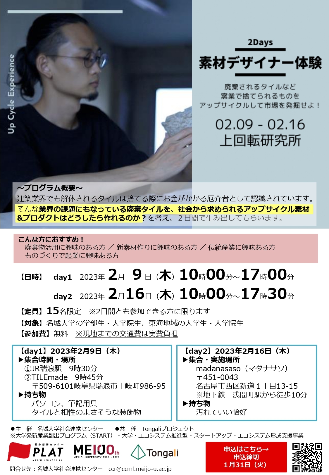 【対象】名城大学の学部生・大学院生、東海地域の大学生・大学院生