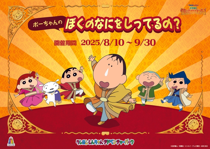「ニジゲンノモリ アニメ淡路島公園」の人気アトラクション「クレヨンしんちゃんアドベンチャーパーク」では、今年の夏大注目の「映画クレヨンしんちゃん 超華麗!灼熱のカスカベダンサーズ」公開を記念し、映画連動企画「ボーちゃんクイズラリー ぼくのなにをしってるの?」を8月10日(日)~9月30日(火)にて開催いたします。
